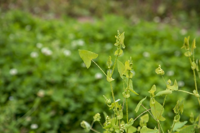 2022年9月22日,吉林省吉林市松花江畔自然生长的杠板归结出了蓝莓似的果实。
