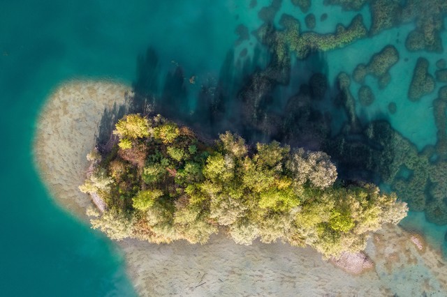 航拍森林湖泊