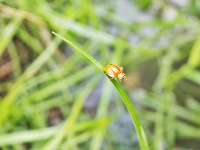 田地中行走的瓢虫的微距特写