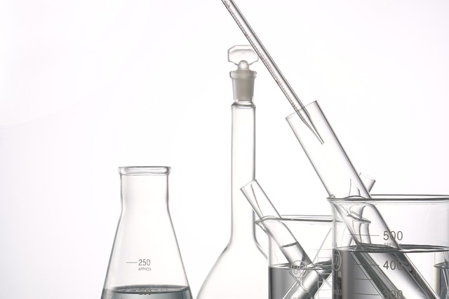 科学实验室实验用透明溶液玻璃器皿,科学研究与液体的结合