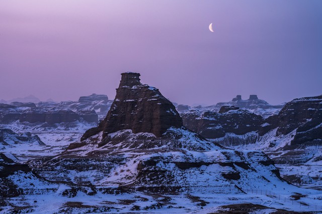 新疆乌尔禾的魔鬼城历经亿万年的风雨剥蚀,大自然的鬼斧神工形成了千奇百怪、形象各异的风蚀地貌。