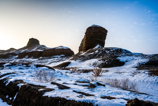 新疆乌尔禾的魔鬼城历经亿万年的风雨剥蚀,大自然的鬼斧神工形成了千奇百怪、形象各异的风蚀地貌。