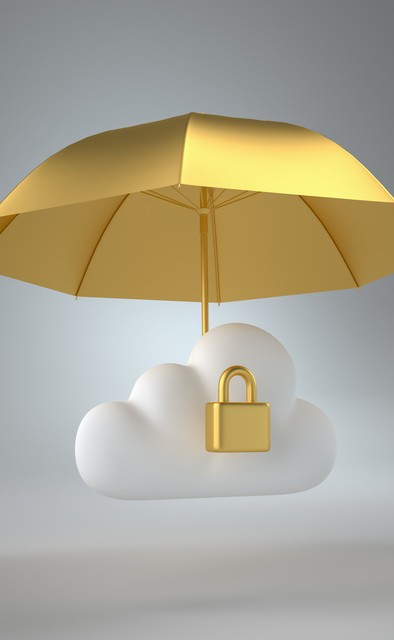 金伞下的云和金锁密码锁加密锁云计算抽象云安全技术创意概念背景图