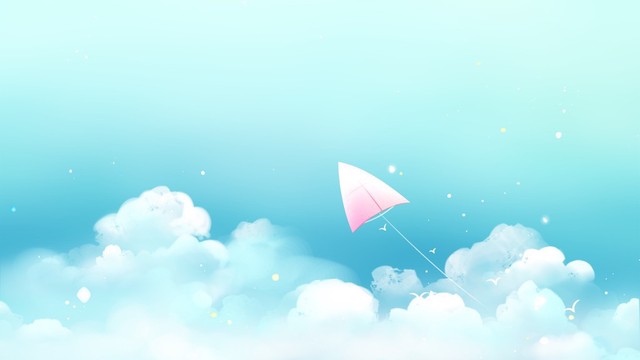 洁白的云海中有只轻盈的风筝,唯美卡通梦幻自然风景插画