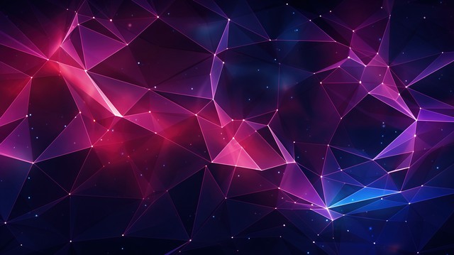 抽象的未来技术与深蓝色背景上的多边形形状。设计数字技术概念