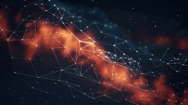 抽象的未来技术与深蓝色背景上的多边形形状。设计数字技术概念