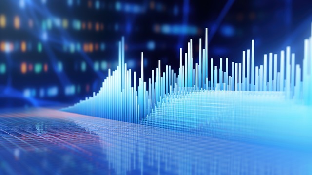 技术数字波背景概念。美丽的运动波点纹理与发光的非聚焦粒子。网络或技术背景