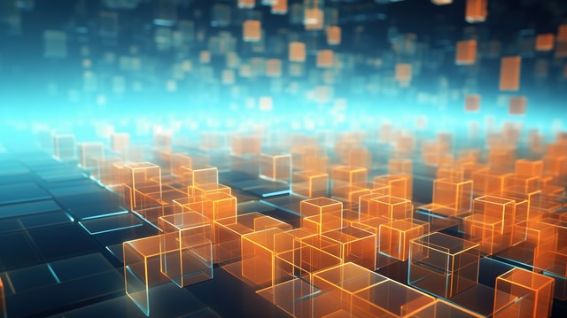 技术数字波背景概念。美丽的运动波点纹理与发光的非聚焦粒子。网络或技术背景