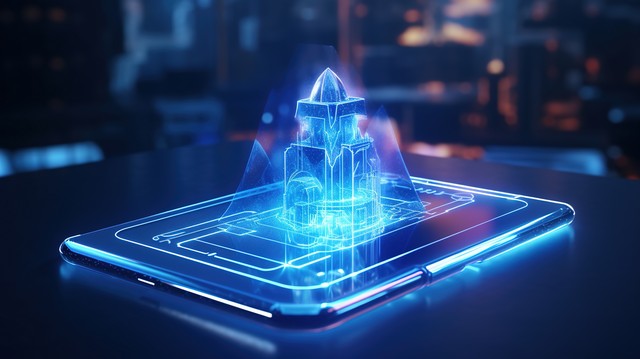 全息投影未来智能手机,数字未来的概念。全息技术。数字技术商业背景。