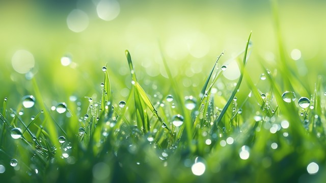 绿叶和水滴特写,自然绿色概念。露珠在绿叶上,美丽模糊的散景背景。绿色自然概念。地球日,拯救纯水概念。