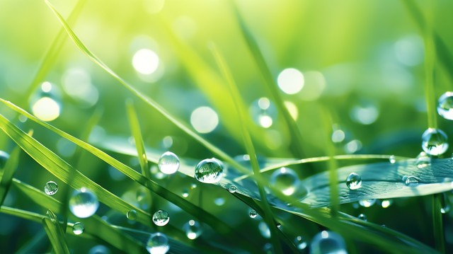 绿叶和水滴特写,自然绿色概念。露珠在绿叶上,美丽模糊的散景背景。绿色自然概念。地球日,拯救纯水概念。