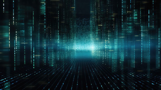 数据技术背景。大数据可视化。数据的流动。信息代码。矩阵样式的背景。…