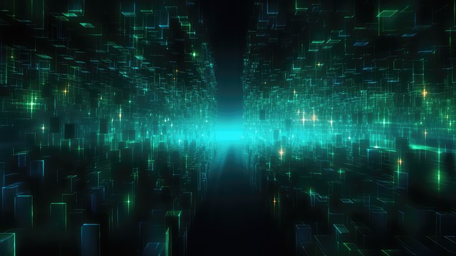 数据技术背景。大数据可视化。数据的流动。信息代码。矩阵样式的背景。…