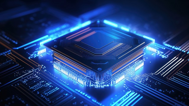 电子集成电路芯片数字插图,商业网络、横幅、人工智能商业、分析的抽象蓝色数字技术未来背景