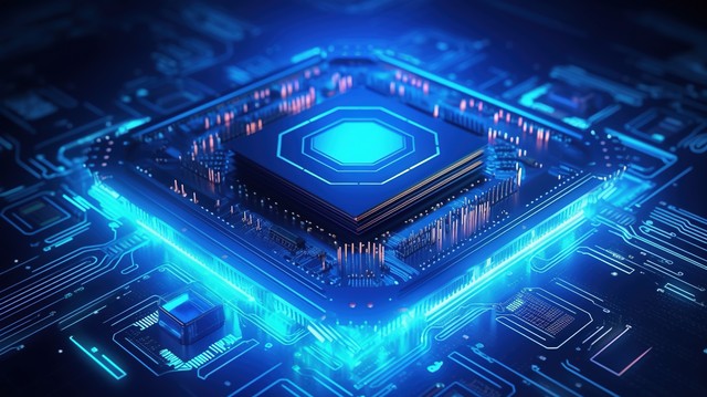 电子集成电路芯片数字插图,商业网络、横幅、人工智能商业、分析的抽象蓝色数字技术未来背景
