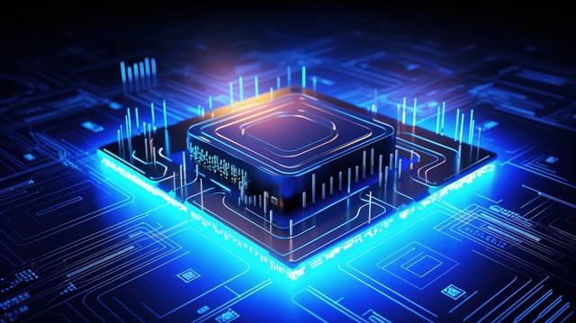 电子集成电路芯片数字插图,商业网络、横幅、人工智能商业、分析的抽象蓝色数字技术未来背景