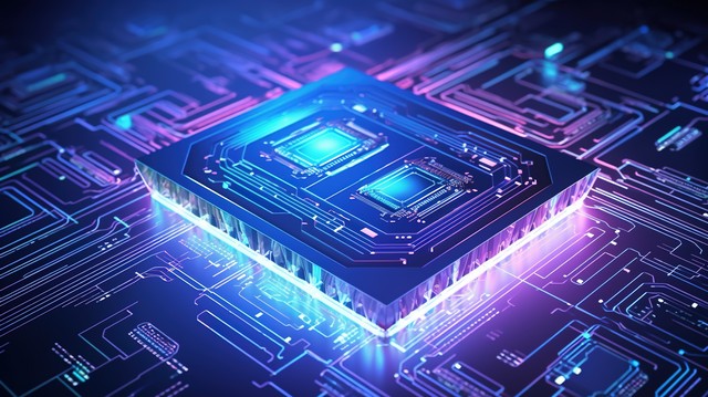 电子集成电路芯片数字插图,商业网络、横幅、人工智能商业、分析的抽象蓝色数字技术未来背景
