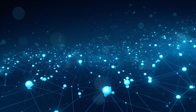 电路板.电子计算机硬件技术.主板数字芯片 3D网络连接背景发光的灯光和连接线和圆点