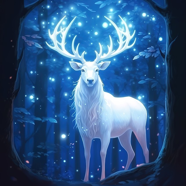 森林里的神鹿魔法奇幻美好祝福守护图腾自然之力敬畏神灵动物图案插画绘画插图祝福元素