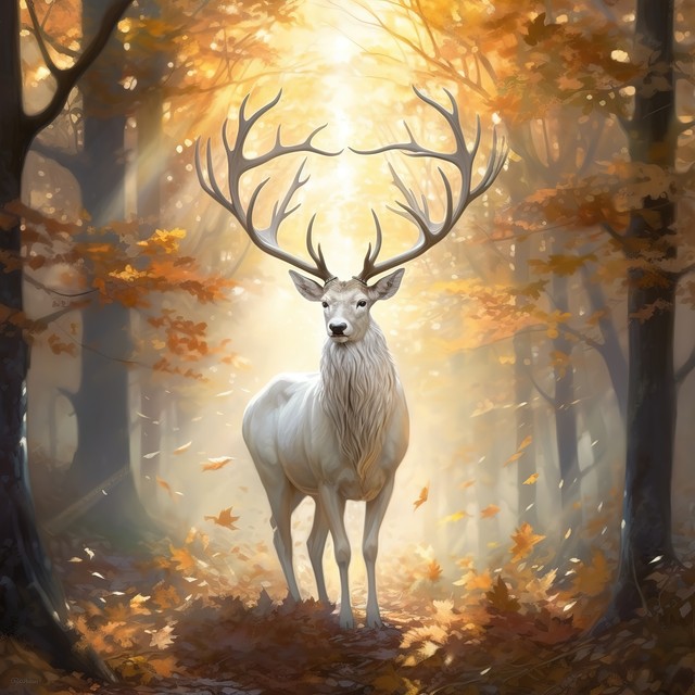森林里的神鹿魔法奇幻美好祝福守护图腾自然之力敬畏神灵动物图案插画绘画插图祝福元素