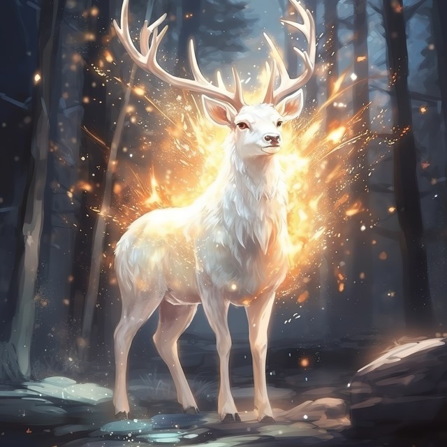 森林里的神鹿魔法奇幻美好祝福守护图腾自然之力敬畏神灵动物图案插画绘画插图祝福元素