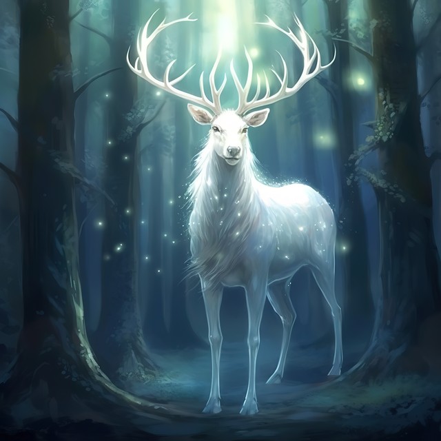 森林里的神鹿魔法奇幻美好祝福守护图腾自然之力敬畏神灵动物图案插画绘画插图祝福元素