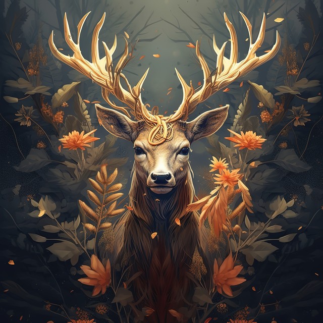 森林里的神鹿魔法奇幻美好祝福守护图腾自然之力敬畏神灵动物图案插画绘画插图祝福元素