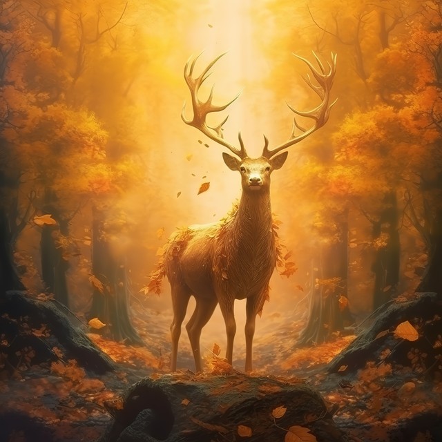 森林里的神鹿魔法奇幻美好祝福守护图腾自然之力敬畏神灵动物图案插画绘画插图祝福元素