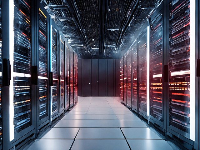 数据中心抽象背景.服务器机房内部.数字信息仓库. Web托管技术.数据库通信系统中的计算机机架