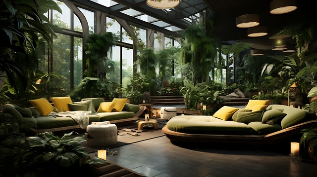 现代室内花园室内设计打造了绿意盎然的自然环境,提供了室内的大自然体验,吸引了自然爱好者和放松者
