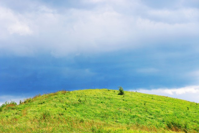天气晴朗,万里无云,北京门头沟北灵山风景区高山与草原美不胜收