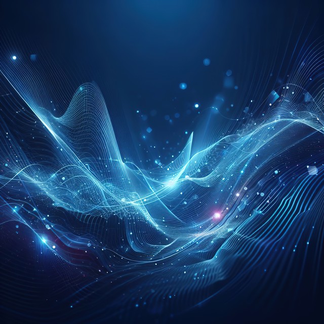 波浪线的抽象蓝光背景,科技感,未来感,宇宙感,光效背景图,蓝色唯美的光效