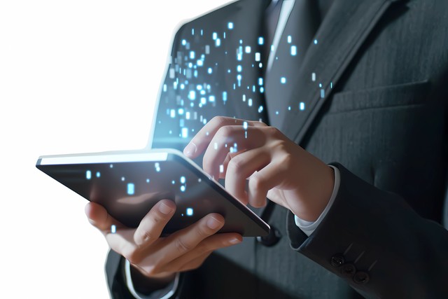 使用平板电脑的商人