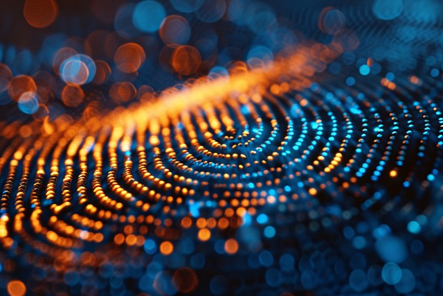 霓虹发光的未来粒子抽象背景,带粒子的抽象数字波,未来主义技术风格