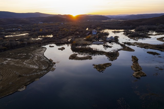 夕阳下的湿地公园