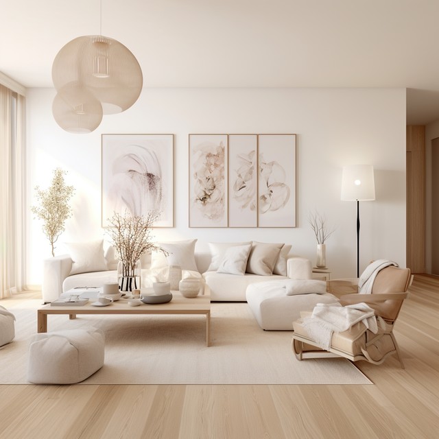 自然元素的明亮通风的斯堪的纳维亚风格客厅