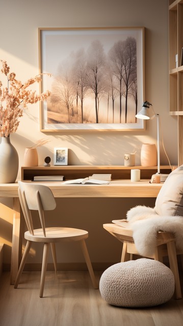 简约的家庭办公室采用自然元素和暖色调照明