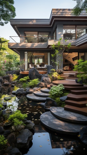 亚洲风格的房子与自然元素