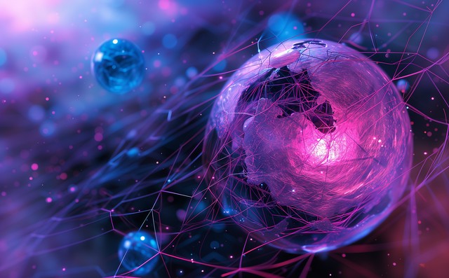 全球无线网络。数字未来中的区块链技术。对等数据库。多边形网格上地球