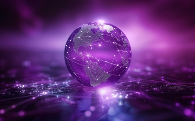 全球无线网络。数字未来中的区块链技术。对等数据库。多边形网格上地球