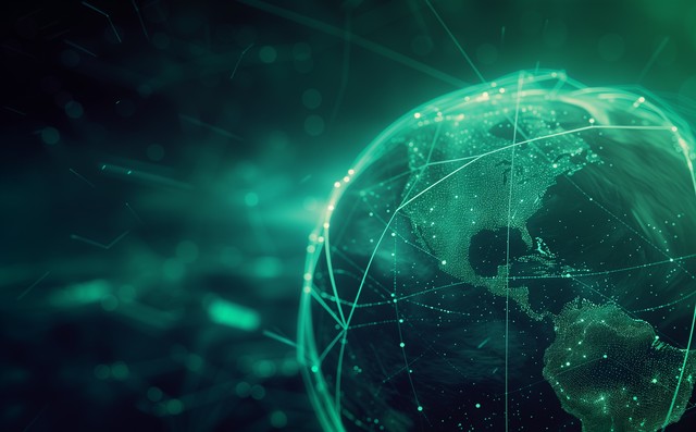 全球无线网络。数字未来中的区块链技术。对等数据库。多边形网格上地球