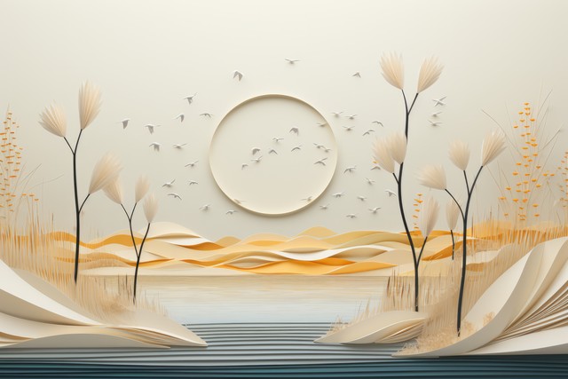 几何与自然元素的墙艺,月亮下的树形装饰