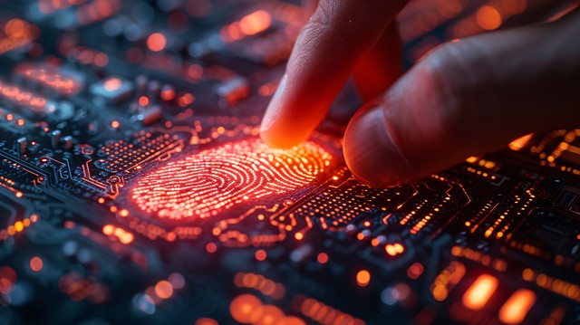 技术生物识别指纹扫描仪的未来数字处理,数字程序监控和安全扫描的概念