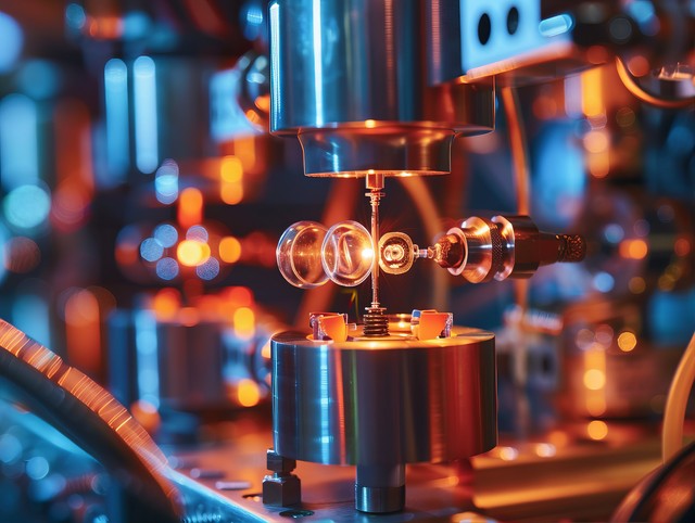 一个超导量子干涉仪(SQUID)中的连接处的特写,描绘出量子效应。