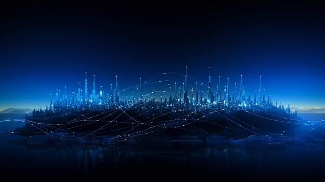 抽象的未来科技与深蓝色背景上的线条状,设计数字技术概念。