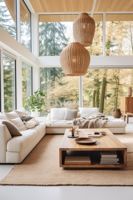 明亮通风的客厅自然元素