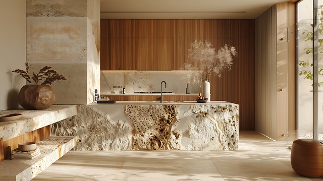 结合木制和石材元素,营造自然和谐氛围的厨房