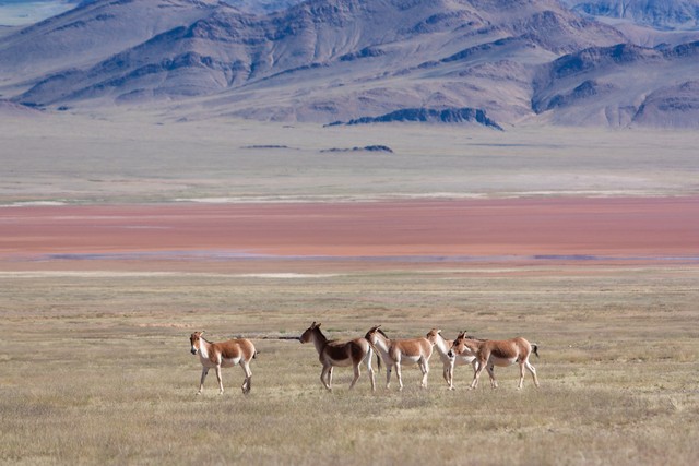 西藏那曲羌塘国家级自然保护区秋天,吃草的藏野驴