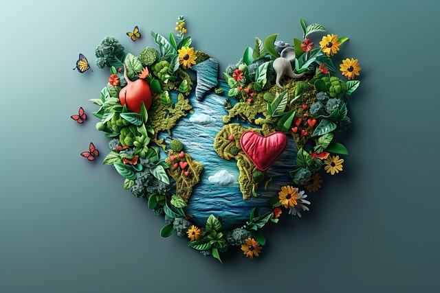 各种自然元素组成的心形图案