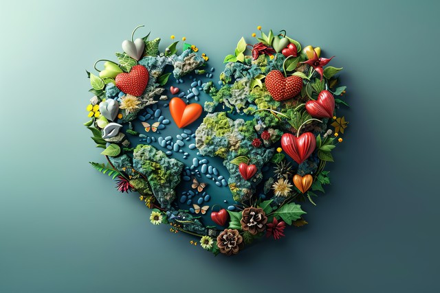 各种自然元素组成的心形图案